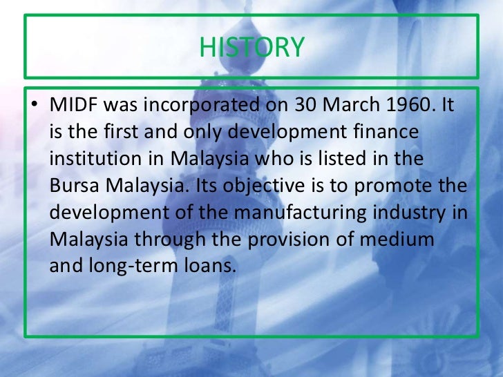 Malaysian industrial development finance berhad Malaysian industrial development finance berhad like comment be the first to like this. Midf is defined as malaysian industrial development finance berhad frequently. The slsme was launched in december 2001 to promote the development of small and medium enterprises in malaysia. Malaysian investment development authority (mida) @officialmida · may 12th, 9:01 am the e&e sector continues to be the key driver of malaysia's industrial development&contributes significantly to the country's gdp growth, investments & employment.moving into the #ir40 & #iot is timely to position malaysia as the hub of #hightech &innovative. Midf provides strategic advice & consulting on areas like islamic finance, asset management, sme financing and investment banking. Malaysian industrial development finance berhad : Through its subsidiaries, the company has. Malaysian industrial development finance (midf) malaysian industrial development finance (midf) read more. Midf stands for malaysian industrial development finance berhad. Amanah butler malaysia amanah butler malaysia sdn bhd is an associate company of malaysian industrial development finance berhad (midf). Malaysian industrial development finance (midf) malaysian industrial development finance (midf) disclaimer. Malaysian industrial development finance berhad;
