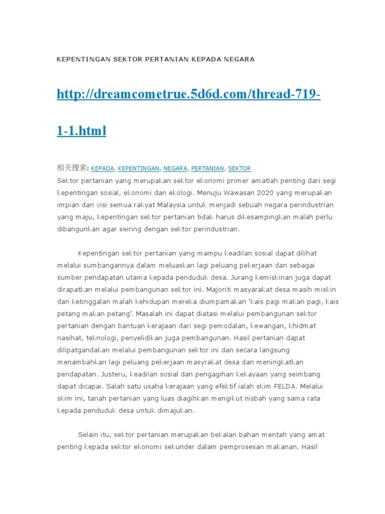 To view this presentation, you'll need to allow flash. Sehingga pemerintah negara berkembang harus menekankan pada pembangunan di sektor pertanian terlebih dahulu sebagai batu loncatan untuk pembangunan di bidang industri. Pertanian merupakan salah satu unsur penting bagi sebuah negara. Kebaikan sektor pertanian kepada negara. Sumbangan sektor pertanian di malaysiapada tahun 2005 yang lalu, perdana menteri malaysia , datuk seri abdullahbin hj. Menuju ke transformasi nasional 2050 yang merupakan impian dan visi semua rakyat malaysia untuk menjadi sebuah negara perindustrian yang maju. Sektor pertanian ini sangat besar pengaruhnya dalam mengurangi jumlah pengangguran di negara kita sehingga kegiatan pertanian ini tidak dapat diabaikan dan berpengaruh positif terhadap tumbuh kembangnya setiap negara. Ajukan pertanyaan tentang tugas sekolahmu. Karena indonesia adalah negara agraris yang dimana sebagian masyarakatnya bermata pencaharian di bidang petanian, sehingga dalam penyerapan tenaga kerja paling banyak di sector pertainan yang menyokong. Apa yang dimaksud dengan sektor pertanian ? Mampu menjadi enjin kedua yang menyumbangkan. Sumbangan sektor pertanian kepada kdnk menunjukkan tren yang semakin menurun daripada 31.5% pada tahun 1965 kepada hanya 12.2% pada walaupun negara sedang mengejar era negara perindustrian, perancangan pertanian terutamanya perancangan pengeluaran dan pemprosesan. Sumbangan sektor ini kepada keluaran dalam negara kasar (kdnk) dan pendapatan eksport negara sentiasa melebihi 40% bagi setiap tahun.