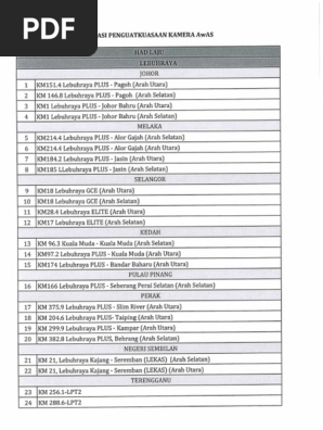 Km151.4 lebuhraya plus (arah utara). Documents similar to lokasi kamera aes lebuhraya malaysia. Selain itu, lokasi yang turut tersedia dengan kamera aes sebelum ini termasuklah di ; Pemasangan aes (automated enforcement system) merupakan salah satu cara atau usaha kerajaan melalui jabatan pengangkutan jalan (jpj). 7 lokasi baru aes 2017.